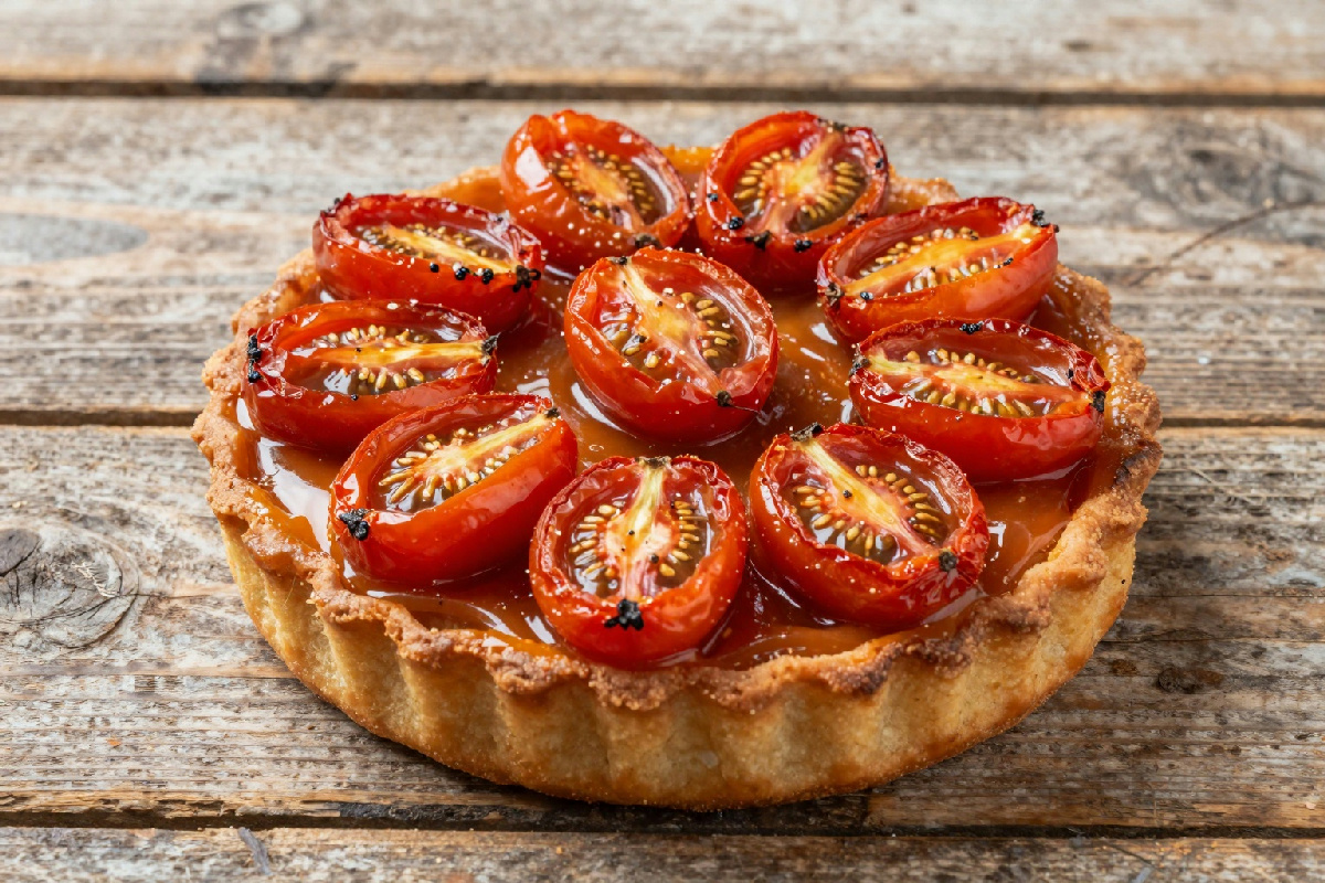 Un elemento interessante della tarte tatin ai pomodorini è l’uso del caramello. Qui, il caramello non è solo un componente decorativo, ma svolge un ruolo importante nel bilanciare i sapori. Per prepararlo, basta sciogliere zucchero in una casseruola fino a ottenere un colore dorato. Una volta pronto, il caramello va versato sul fondo della tortiera. Poi, sistemare i pomodorini caramellati sopra il caramello, così durante la cottura, il dolce sapore dei pomodorini viene ulteriormente esaltato.