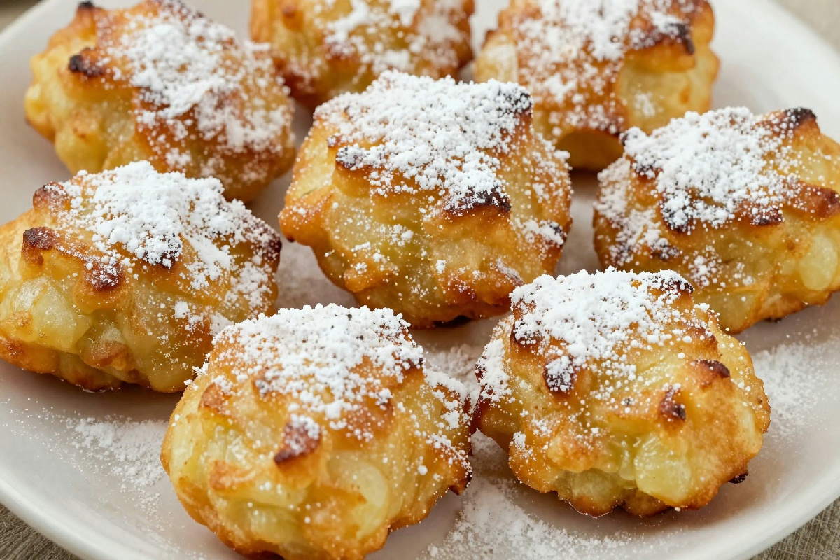 Infine, spolveriamo le frittelle di mele con zucchero a velo mentre sono ancora calde. E così passaggio le rende non solo più belle da vedere, ma aggiunge anche un ulteriore tocco di dolcezza. Serviamo le frittelle di mele calde, magari accompagnate da una pallina di gelato alla vaniglia o da una salsa di caramello per un’esperienza ancora più golosa. La gioia di gustare queste frittelle non risiede solo nel sapore, ma anche nei ricordi e nelle emozioni che evocano, rendendole una prelibatezza senza tempo per tutte le età . E E poi che possono essere gustate anche a colazione, magari con un buon caffè o una tisana calda, per iniziare la giornata con il piede giusto.